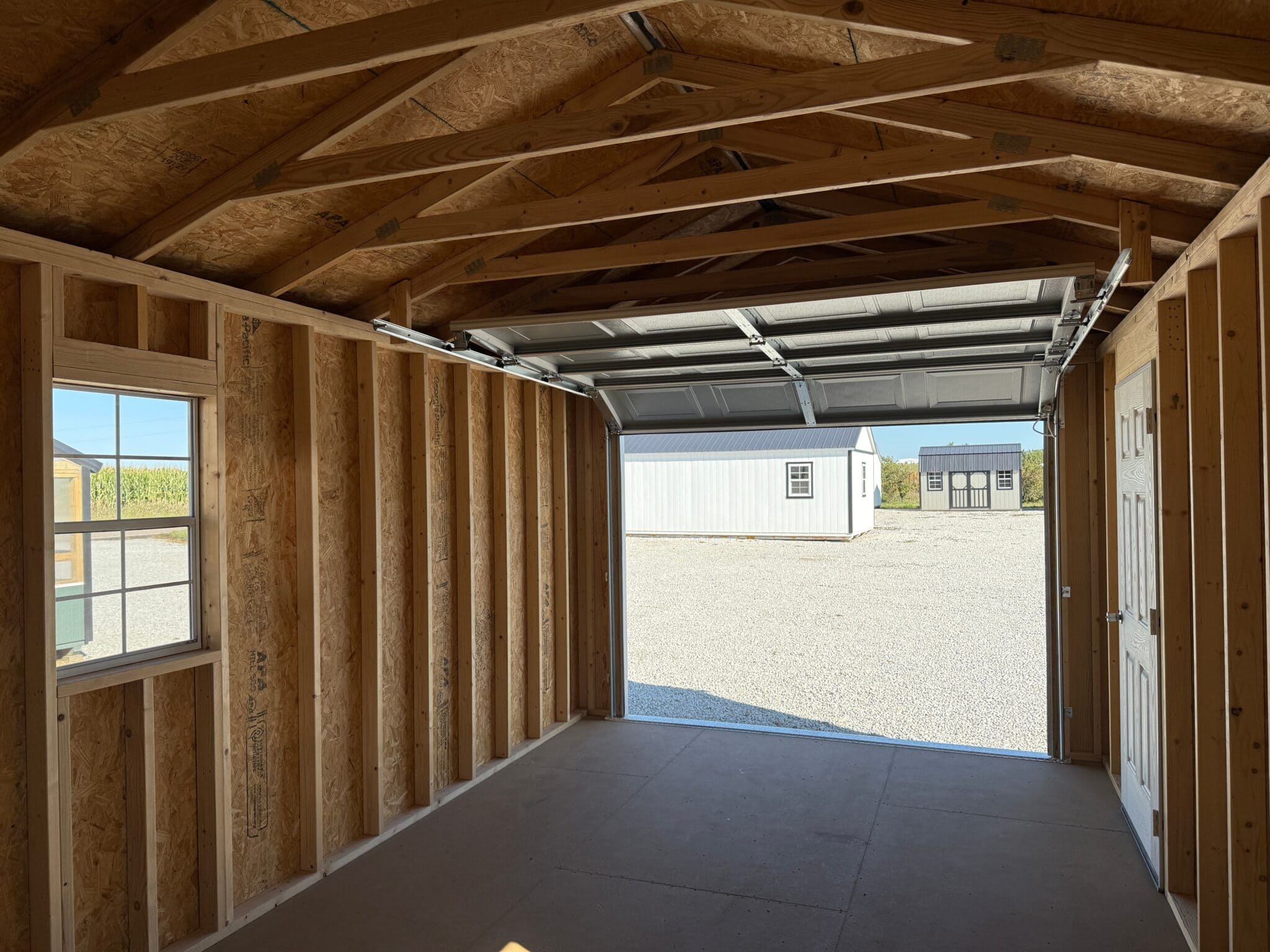 10′ wide garages include an 8′ x 7′ roll-up door